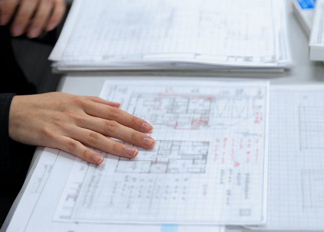見込める!一般的な同業他社に比べ、早い段階から設計に携われるのがメルディアDCの設計職の特徴です。製図やデザインの実務を通じてスキルアップが図れるのはもちろん、プランニングにも関わることで家づくりに関する幅広い視野が養えます。